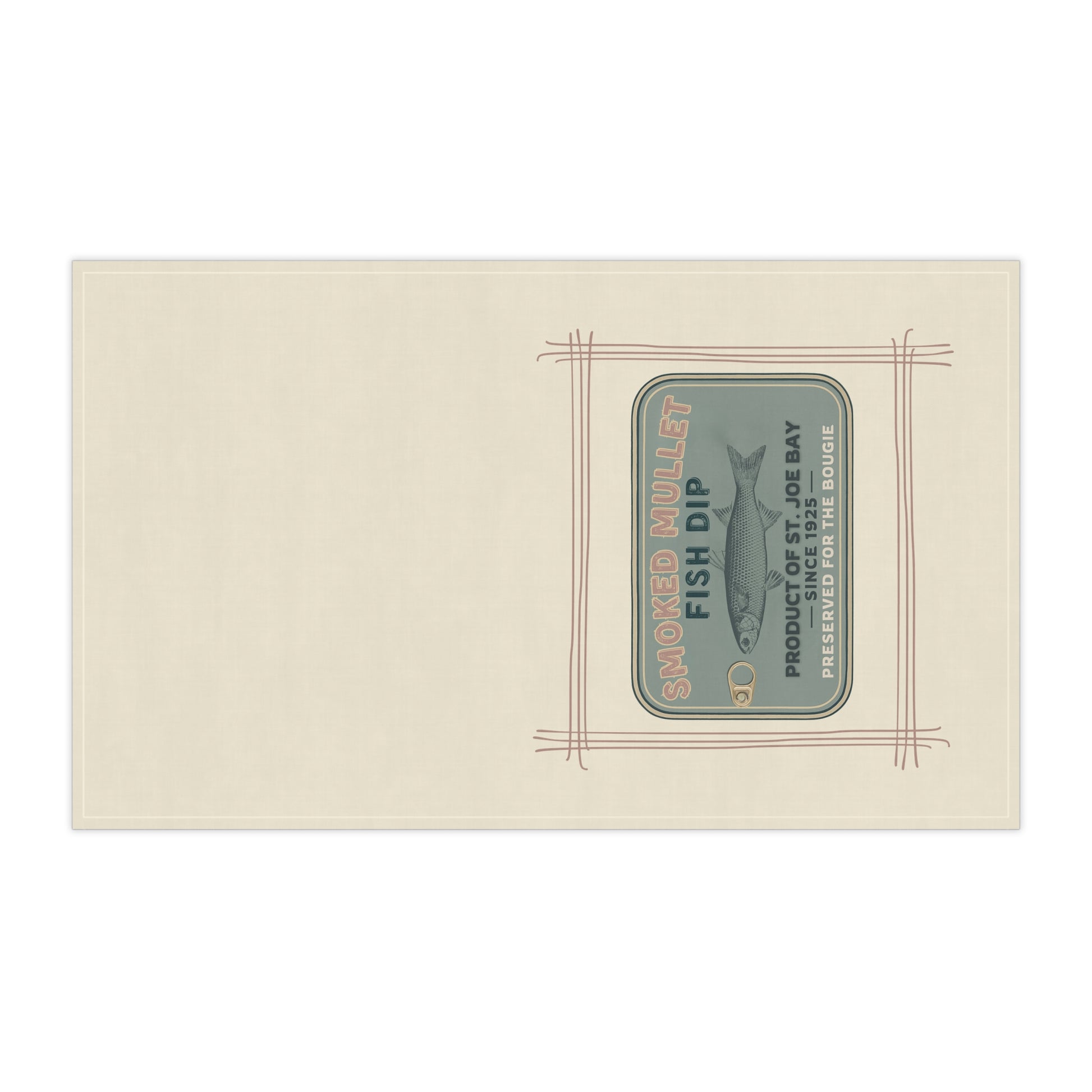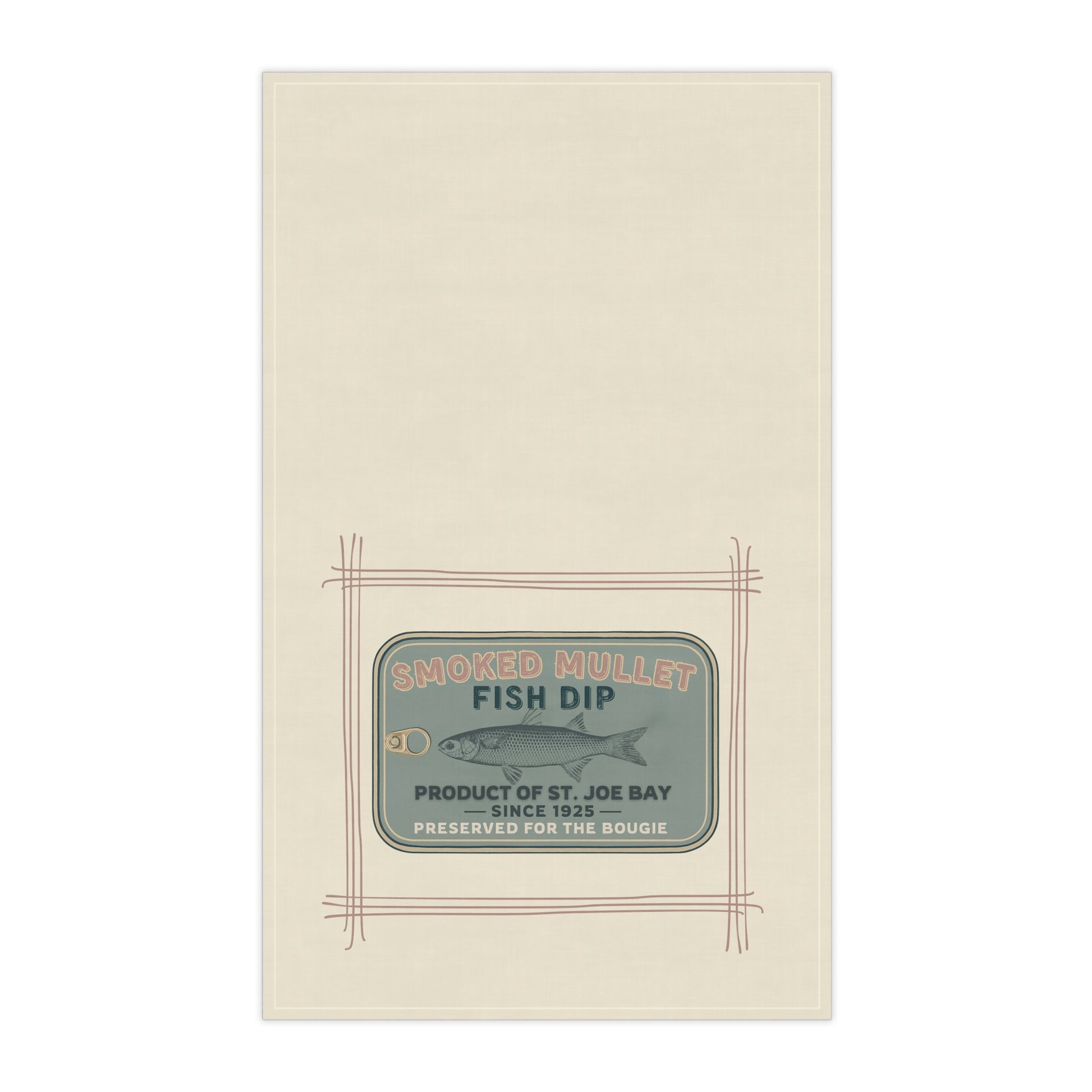 Introducing our Tea Towel featuring a Smoked Mullet Fish Dip Tin Can in a calming yet rich green. Our charming Tea Towels are perfect for adding a touch of Fisherman Core style to your kitchen! These versatile towels exude a fresh and inviting vibe, seamlessly blending practicality with elevated design. Ideal for anyone who loves to cook or entertain, they brighten up your space while being utterly functional. Perfect for dog lover housewarming gifts, weddings, or any festive celebration, these tea towels bring warmth and joy to gatherings. Whether drying dishes, decorating your kitchen, or giving as a thoughtful present, our tea towels are a delightful addition to any home.